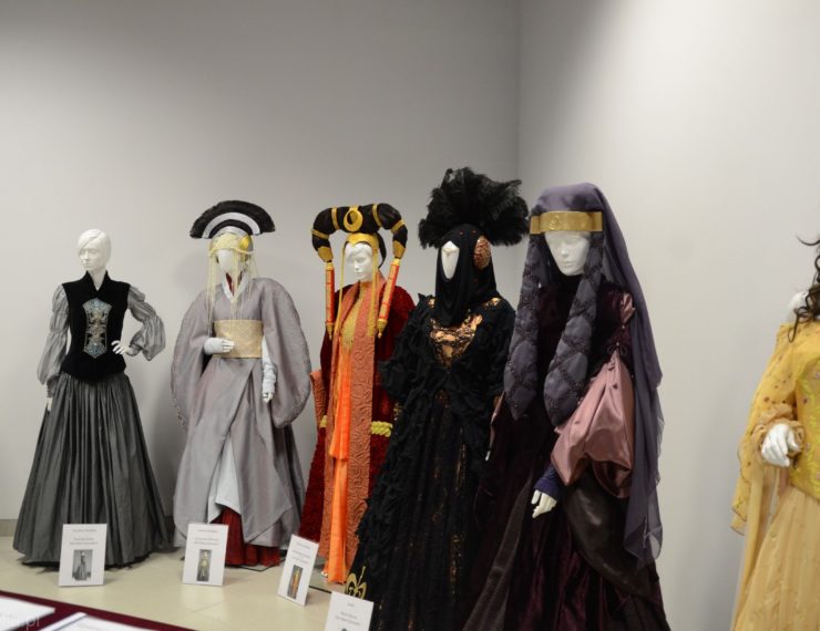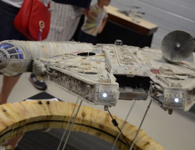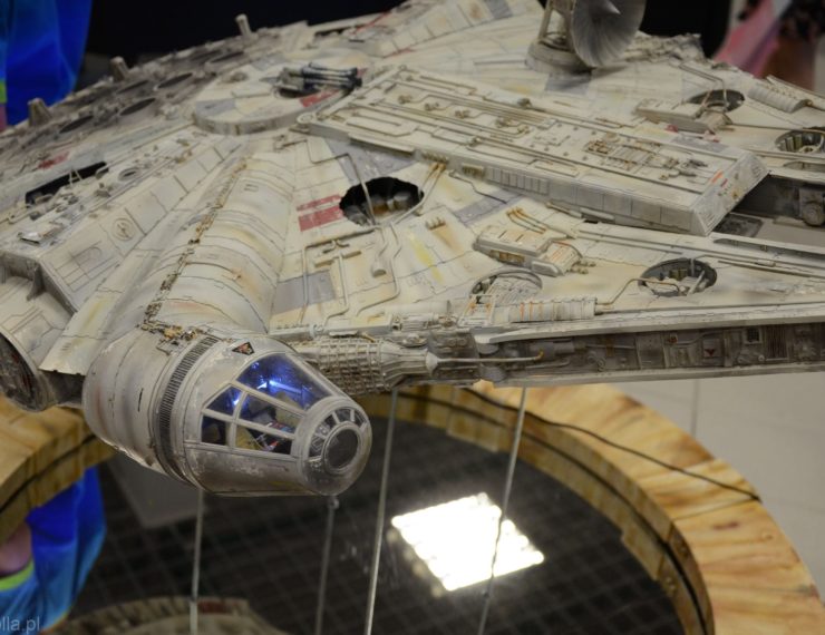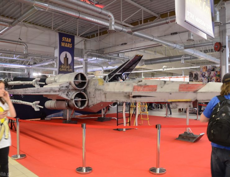 Ale dość o zakupach, bo pomyślicie, że tylko po to byłam na targach… Miejscem bliskim mojemu sercu była oczywiście Strefa Gwiezdnych Wojen. Składała się z wystawy wykonanych z niezwykłą pieczołowitością modeli pojazdów oraz niektórych budowli, np. lepianek z Tatooine. Obok znajdowały się również kobiece stroje, elegancko zaprezentowane na manekinach. Bliżej głównej alei znajdował się model 1×1 X-Winga, Snow Speedera oraz AT Walkera.